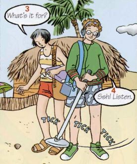 Молодые люди находят на пляже старинные монеты. А где поиск кладов - там везде приключения и опасности. С приключениями учить язык намного интересней.